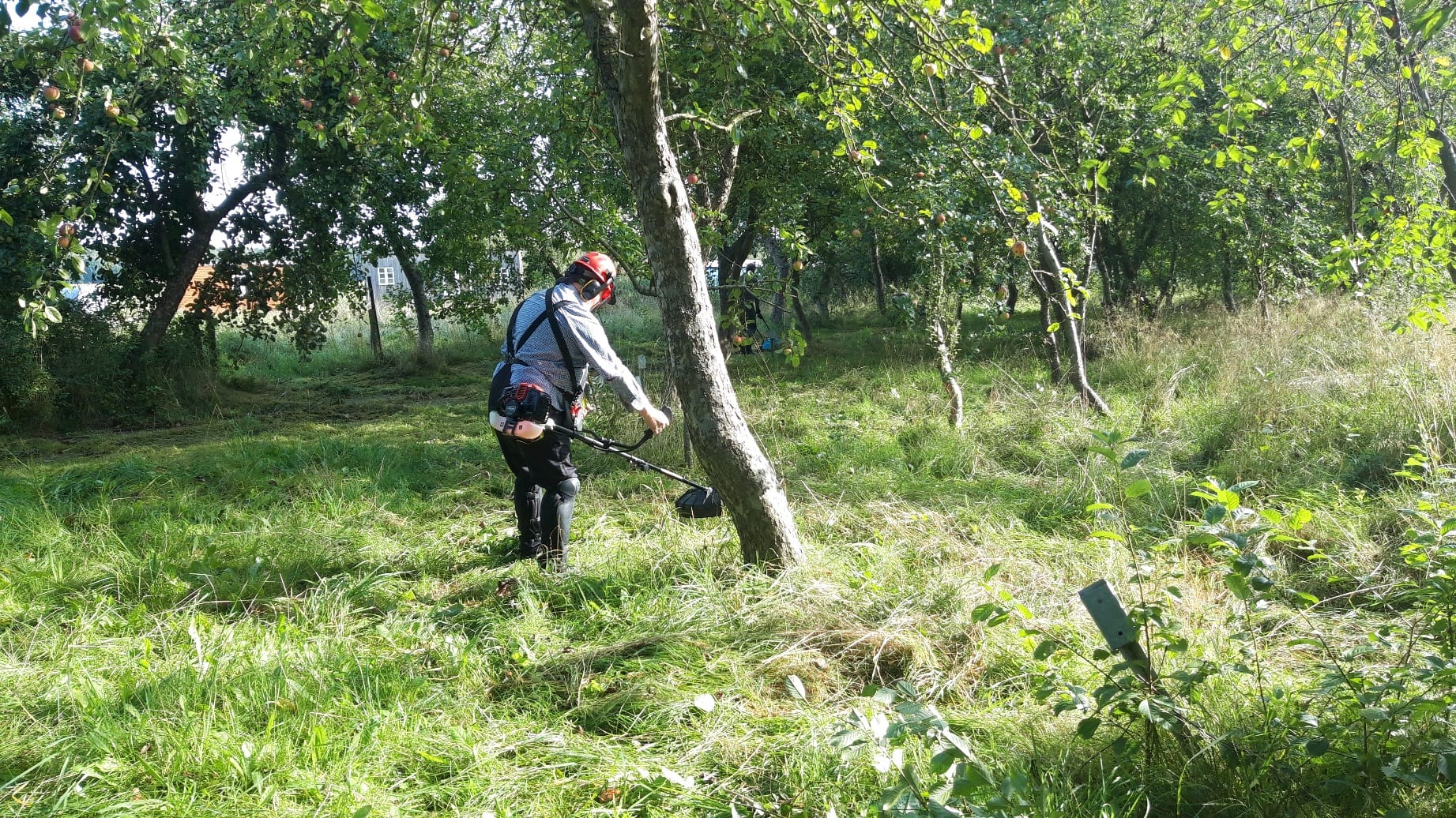 Kurz vor dem Herbstanfang haben wir es dem Sommer gleich gemacht - der noch einmal mit 24 Grad aufwartete - und uns tüchtig auf der Obstwiese in Weitenhagen ins Zeug gelegt. Die Mahd stand an.