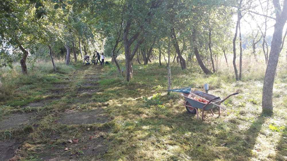 Gestärkt mit köstlicher Kürbissuppe (danke Katrin!) und unserem leckeren Apfelsaft "Siebter Himmel", die Äpfel kommen u.a. von dieser schönen Obstwiese, erfolgte bis zum Nachmittag der gemeinschaftliche Pflegeeinsatz.